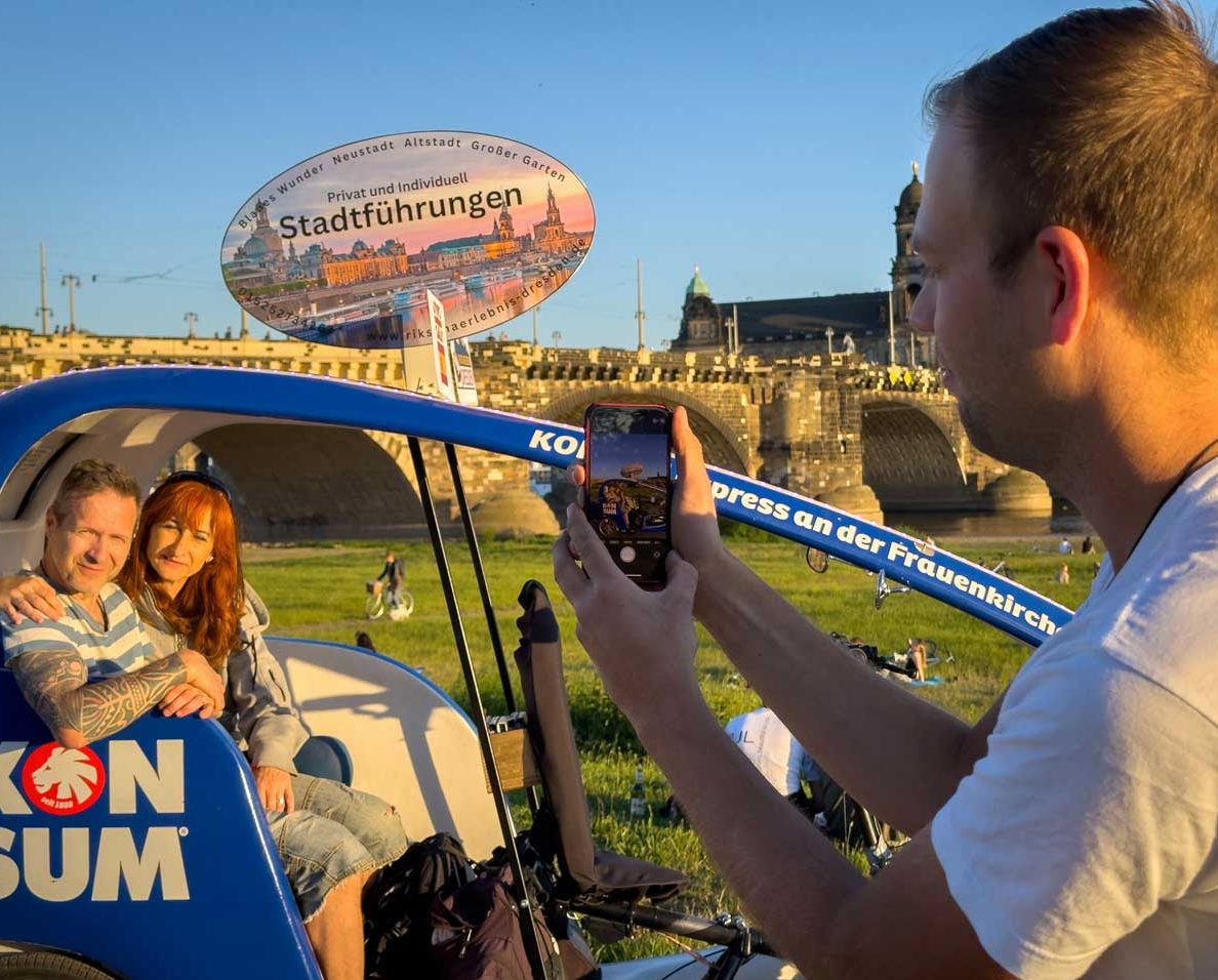 Willkommen zum ultimativen Dresdner Erlebnis! Entdecken Sie die reiche Geschichte und die schönsten Sehenswürdigkeiten der Stadt bei unseren geführten Rikschafahrten.