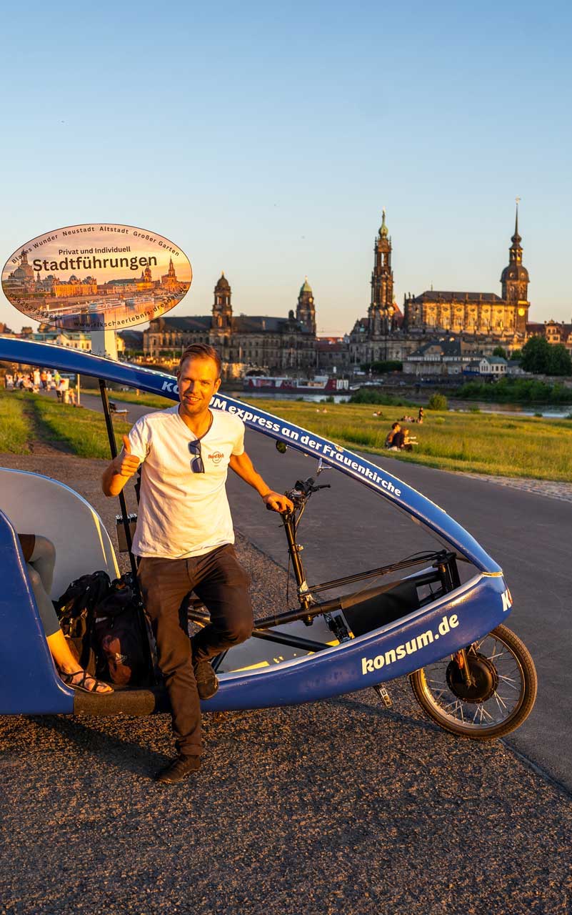 Wie wäre es dieses Jahr mit einem ganz besonderen Geschenk? Verschenke eine individuelle Rikscha-Fahrt durch das wunderschöne Dresden – ein Erlebnis, das lange in Erinnerung bleibt. Ob für deine Eltern, Großeltern oder liebe Freunde: Mit unserem Gutschein schenkst du nicht nur eine Fahrt, sondern gemeinsame Zeit voller Entdeckungen und Genuss.
